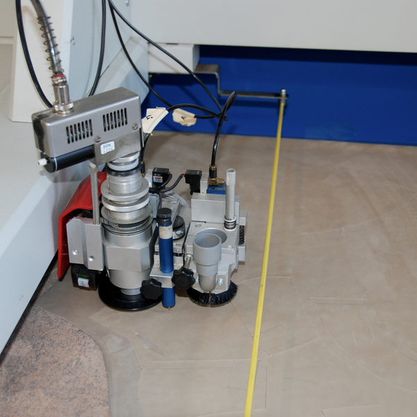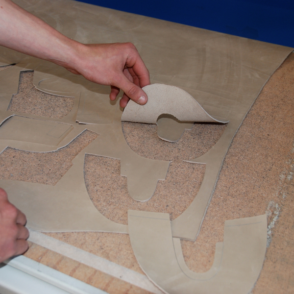 Het schoenmodel wordt ook digitaal uitgewerkt en rechtstreeks uitgesneden met een snijmachine.